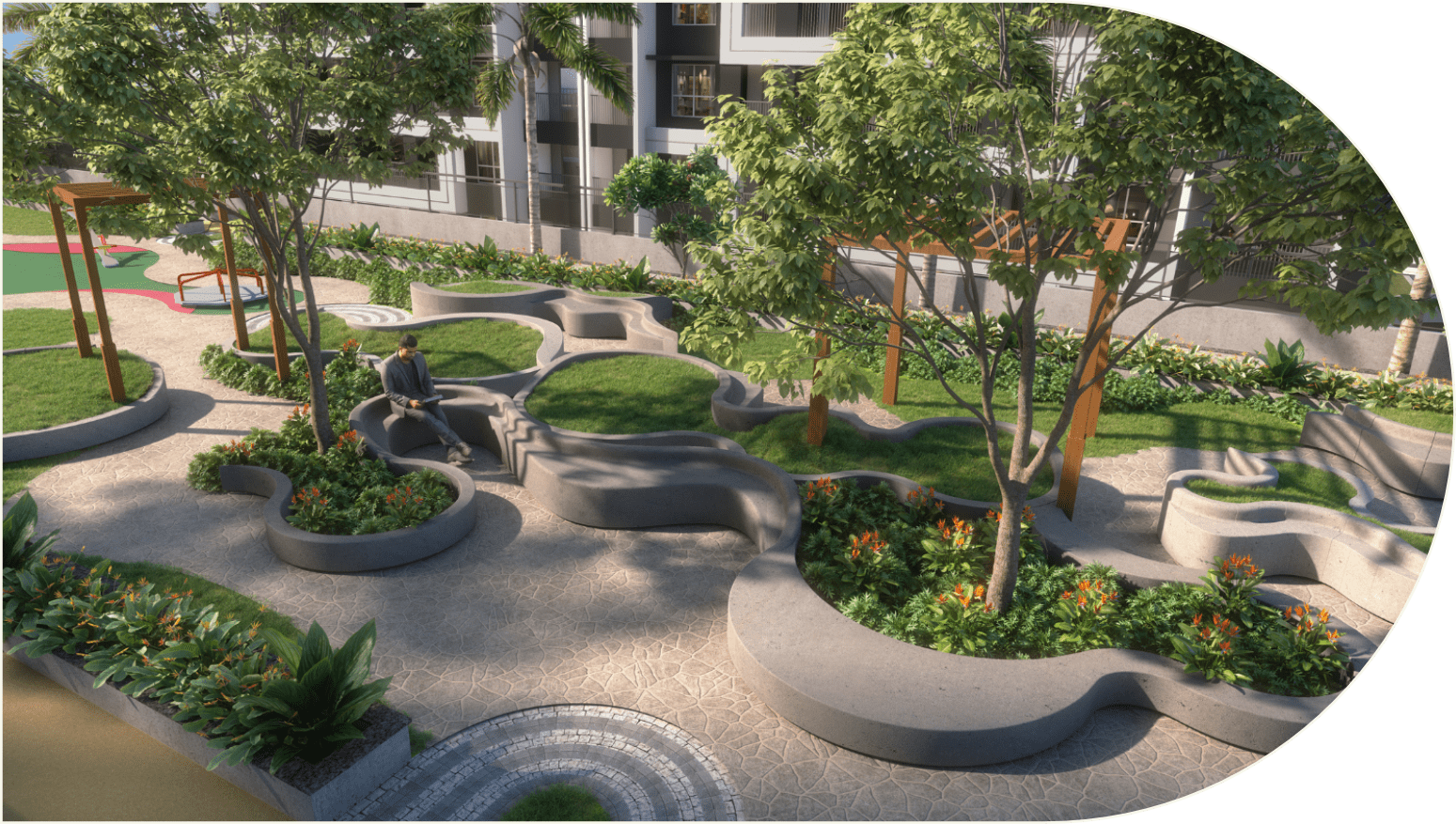 The landscaped heart of Regency Astra, designed to be your outdoor sanctuary and gathering ground — right within your community.