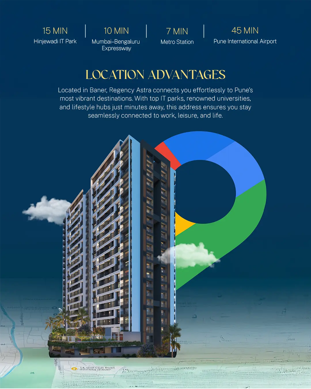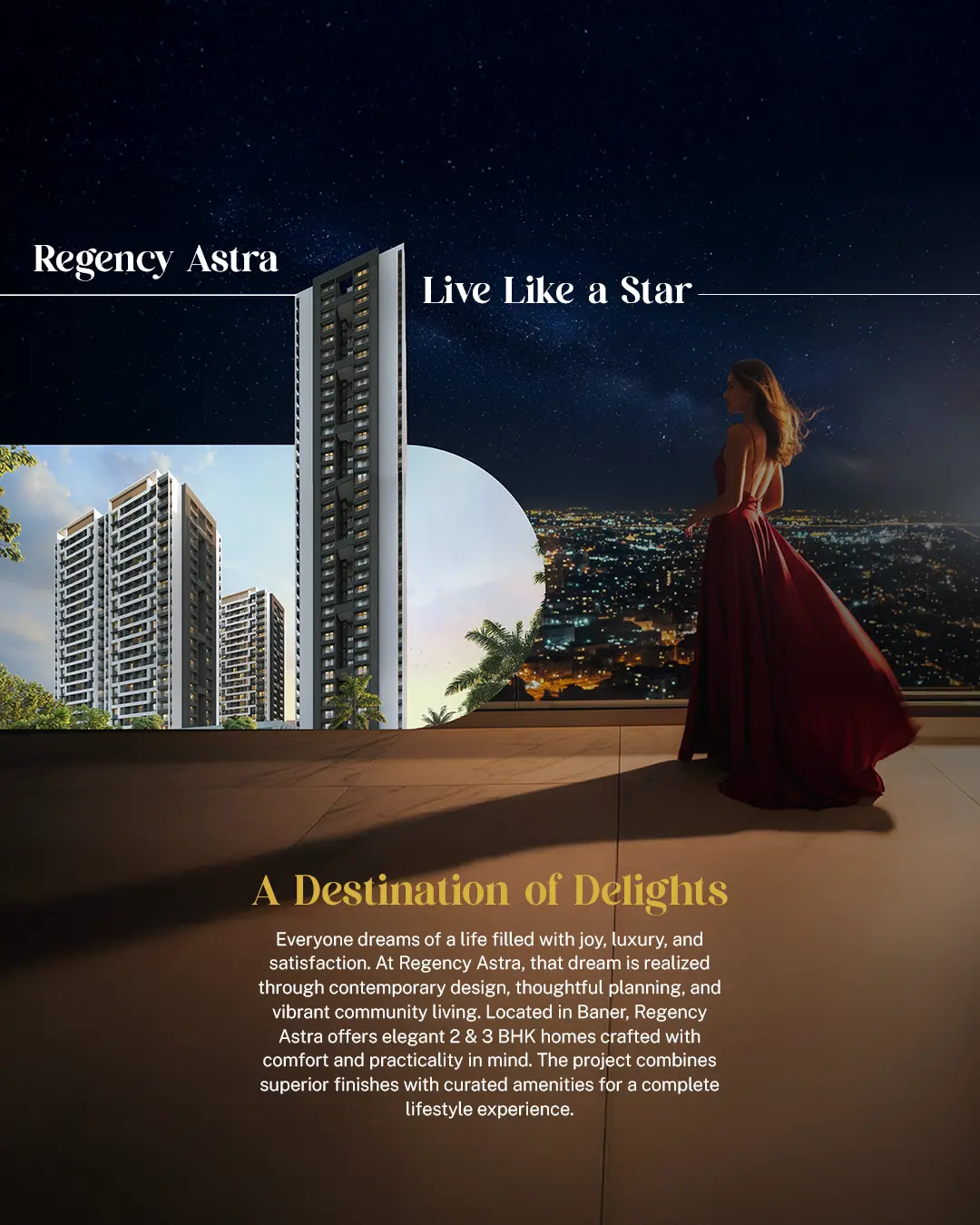 Everyone dreams of a life filled with joy, luxury, and satisfaction. At Regency Astra, that dream is realized through contemporary design, thoughtful planning, and vibrant community living. Located in Baner, Regency Astra offers elegant 2 & 3 BHK homes crafted with comfort and practicality in mind.